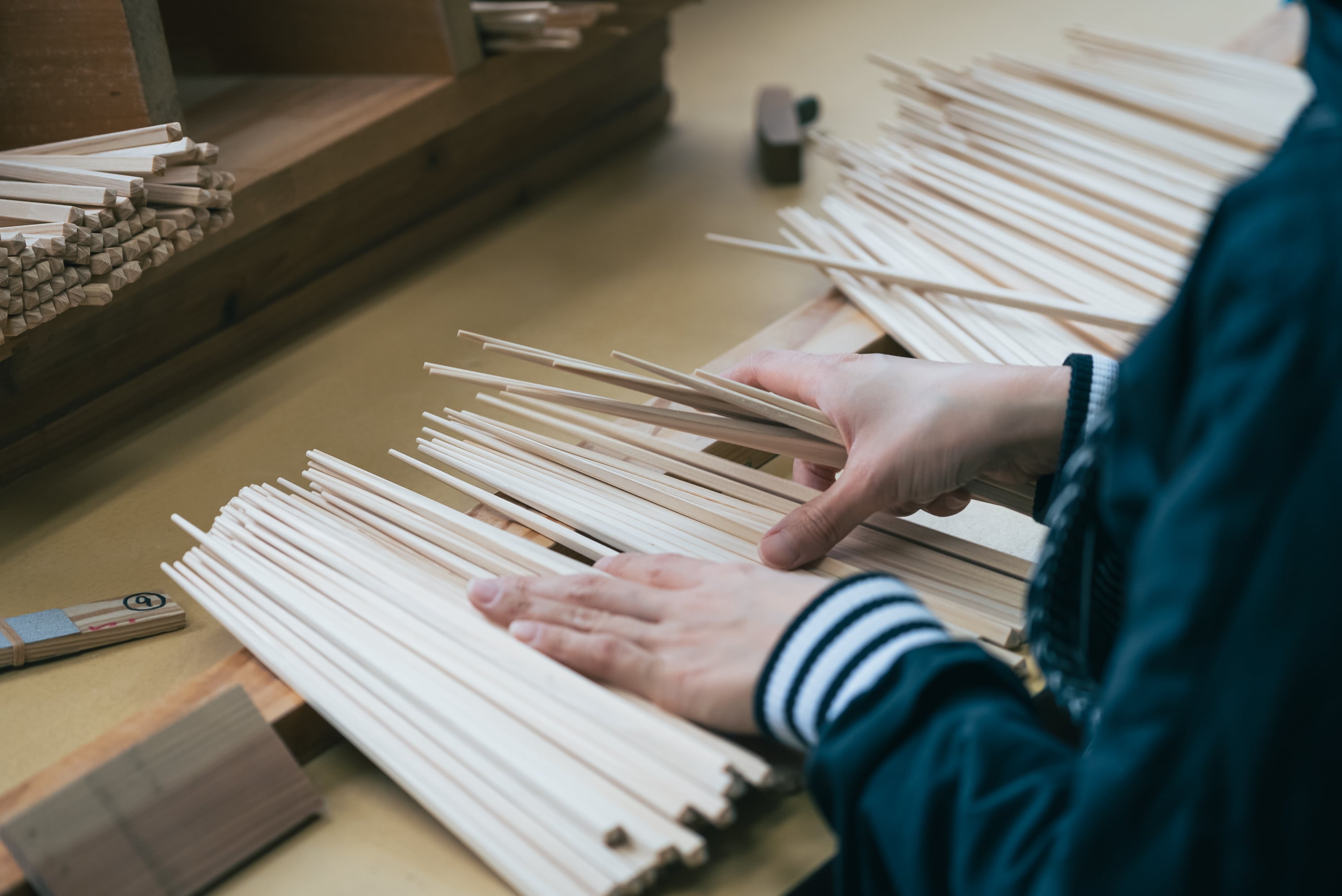 私たちは「割られた割箸」のみを作ってお届けしています。材料の仕入れ、製作までなぜ吉野で行うか。お箸一本一本を丁寧につくることで口当たりが良く、木目や質感など日本の白木本来の美しさを感じていただけるからです。全ては最高のお料理のために!